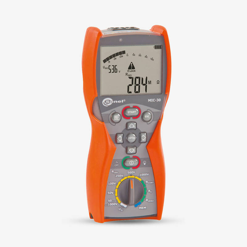 Реалізоване в MIC-30UA встановлення трьох інтервалів часу дозволяє автоматично розраховувати коефіцієнти абсорбції (зволоженості) та поляризації (старіння). У процесі вимірювання опору ізоляції пристрій відображає величину струму витоку, а також вимірює ємність кабелю.